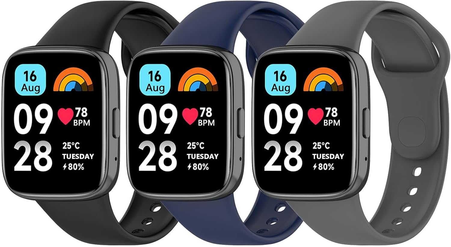 [3 عبوات] اساور متوافقة مع ساعة ريدمي 3 اكتيف، اساور ساعة من السيليكون الناعم لساعة شاومي ريدمي 3 اكتيف للنساء والرجال