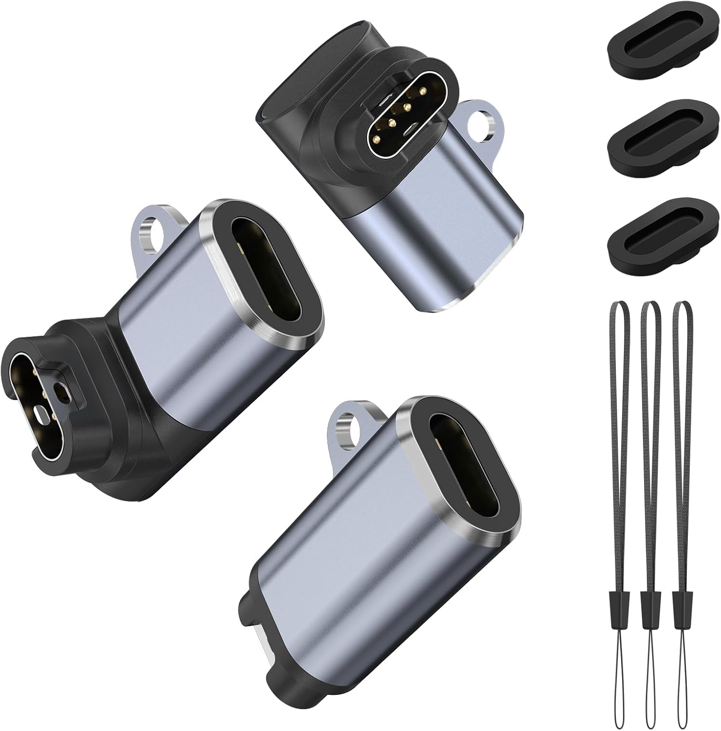 3 قطع محولات USB C متوافقة مع ساعة جارمين، محول كابل شحن لجارمين فيفو اكتيف 6 5 4 3S 4S، فينو Sq/Sq 2/ فينو 2/2s/3/3s/2 بلس، فوررنر 245 55 935 255 (رمادي فضي)