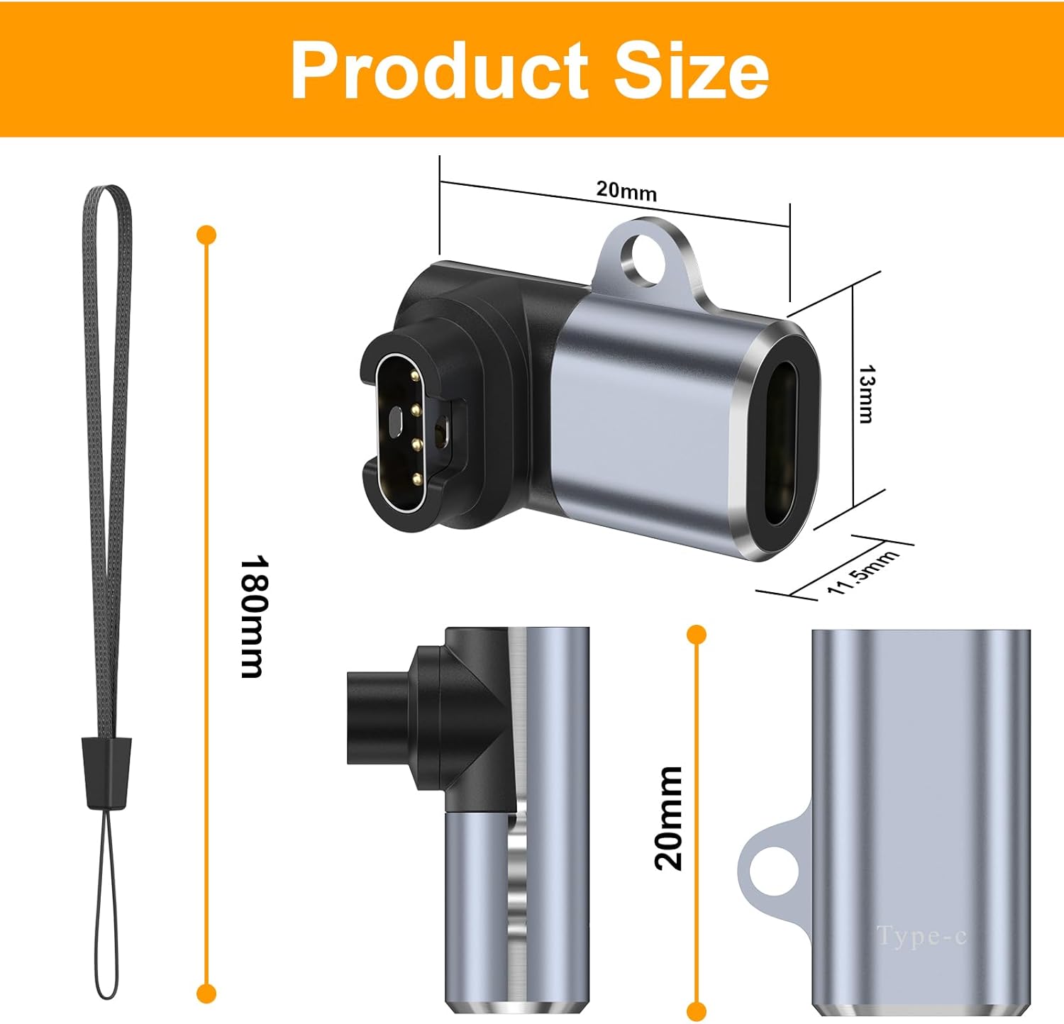 【منفذ USB-C】يتميز محول شاحن الساعة جار مين الخاص بنا بخيارات من النوع المستقيم والنوع L. إذا لم يكن لديك كابل شحن جي ار مين مخصص، يمكنك استخدام محول الشحن جي ار مين هذا وتوصيل كابل الشحن من النوع سي بهذا المحول للشحن. إنه بسيط وسهل الاستخدام.