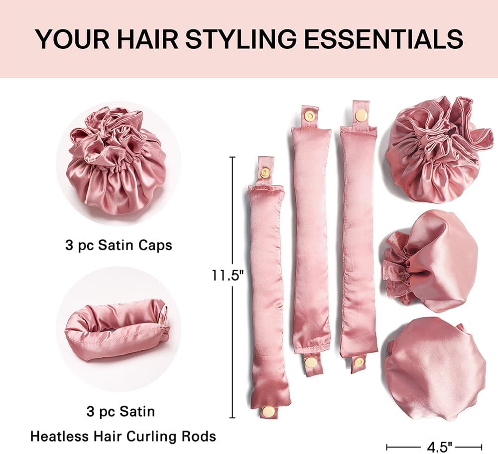 3 مجموعات / 6 قطع من مكواة تجعيد الشعر من الساتان الجديد بدون حرارة من اريفور، بكرات شعر لتجعيد الشعر بدون حرارة مع قبعات للشعر، شريط راس ناعم بدون حرارة للشعر الطويل، لا تتجعد بالحرارة للنوم طوال