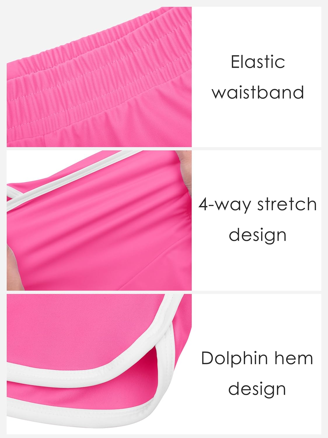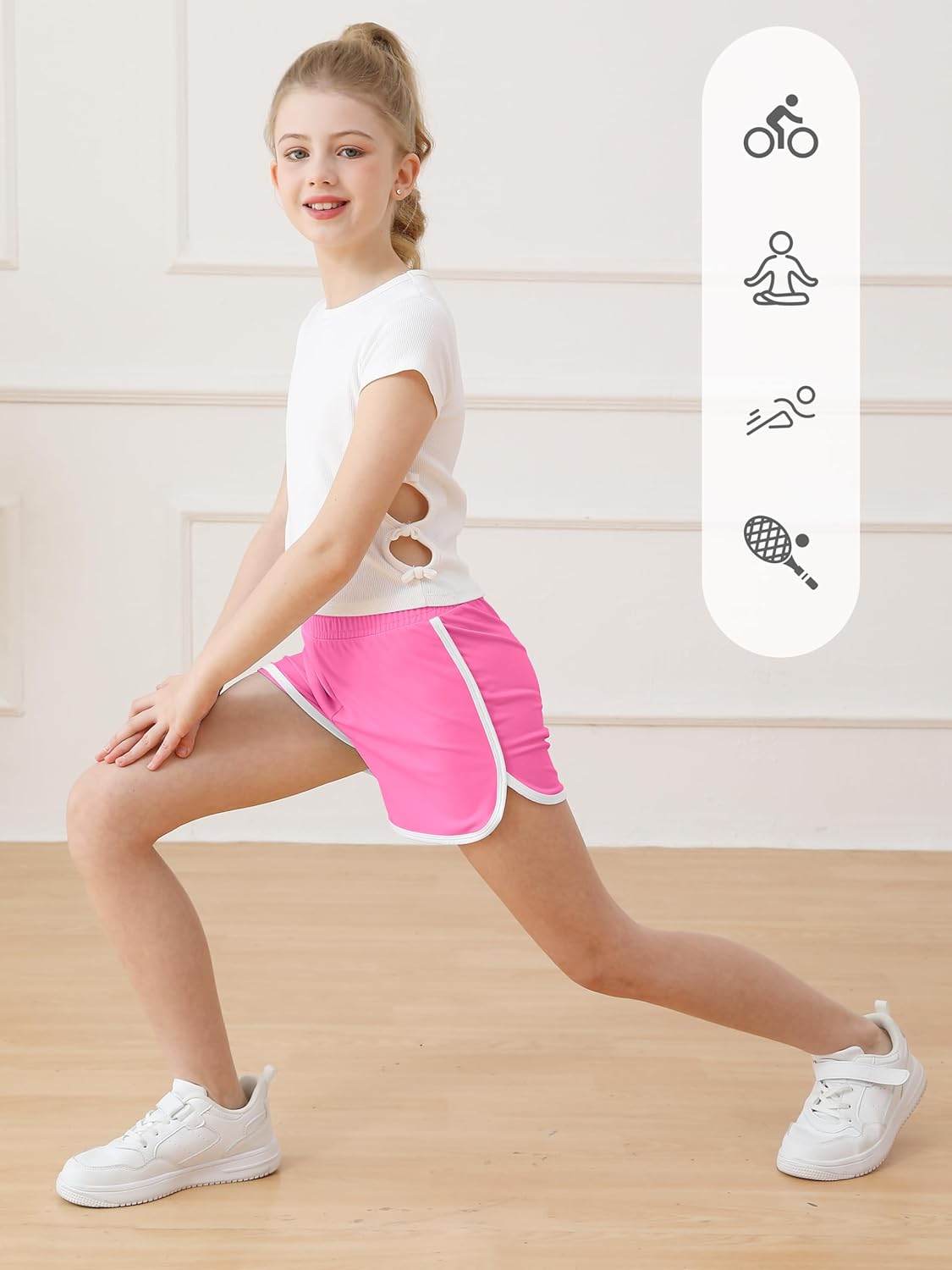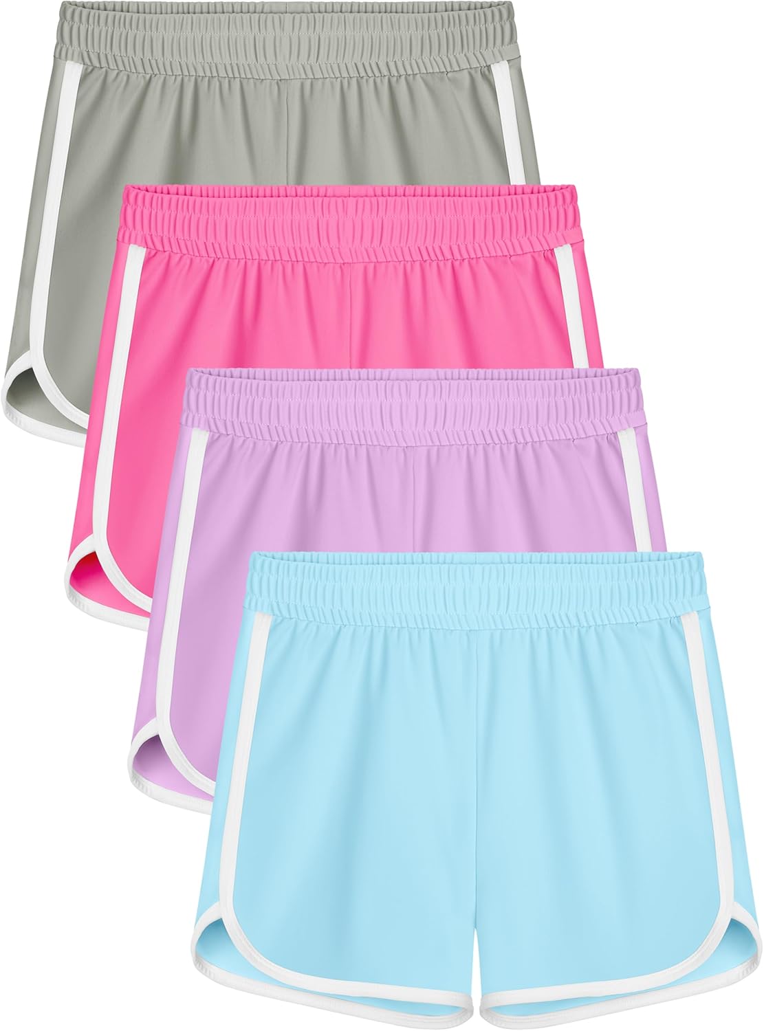 4 عبوات من شورتات كرة القدم للبنات، شورتات رياضية سريعة الجفاف للتمارين الرياضية للاطفال بتصميم دولفين