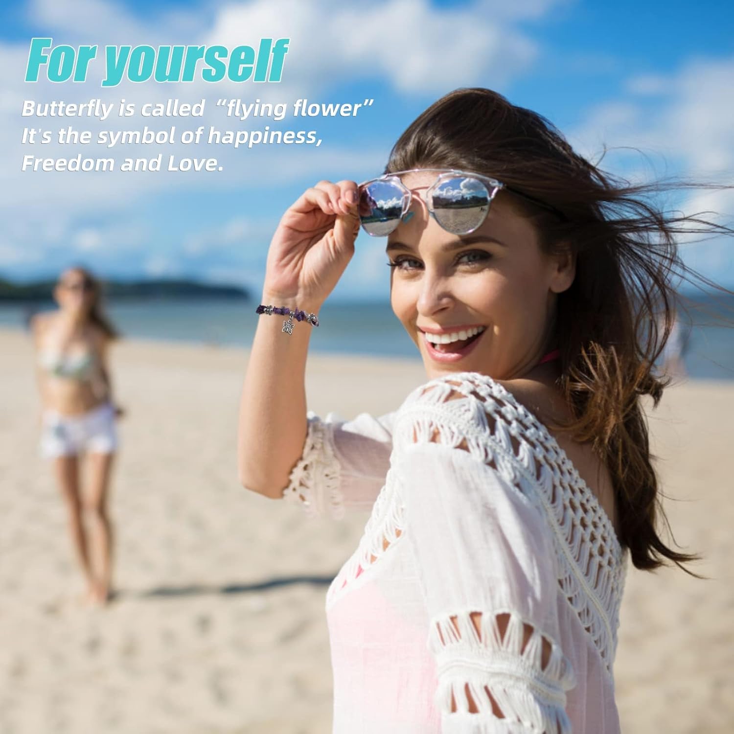 🎁 هدية جميلة: سواء كان عيد ميلاد أو العودة إلى المدرسة أو الكريسماس أو عيد الشكر أو عيد الأم أو الذكرى السنوية، فإن سوار الفراشة هذا هو خيار ممتاز. إنها هدية ذات مغزى لأحبائك الذين يقدرون الأحجار الكريمة الطبيعية ورمزية الفراشة.