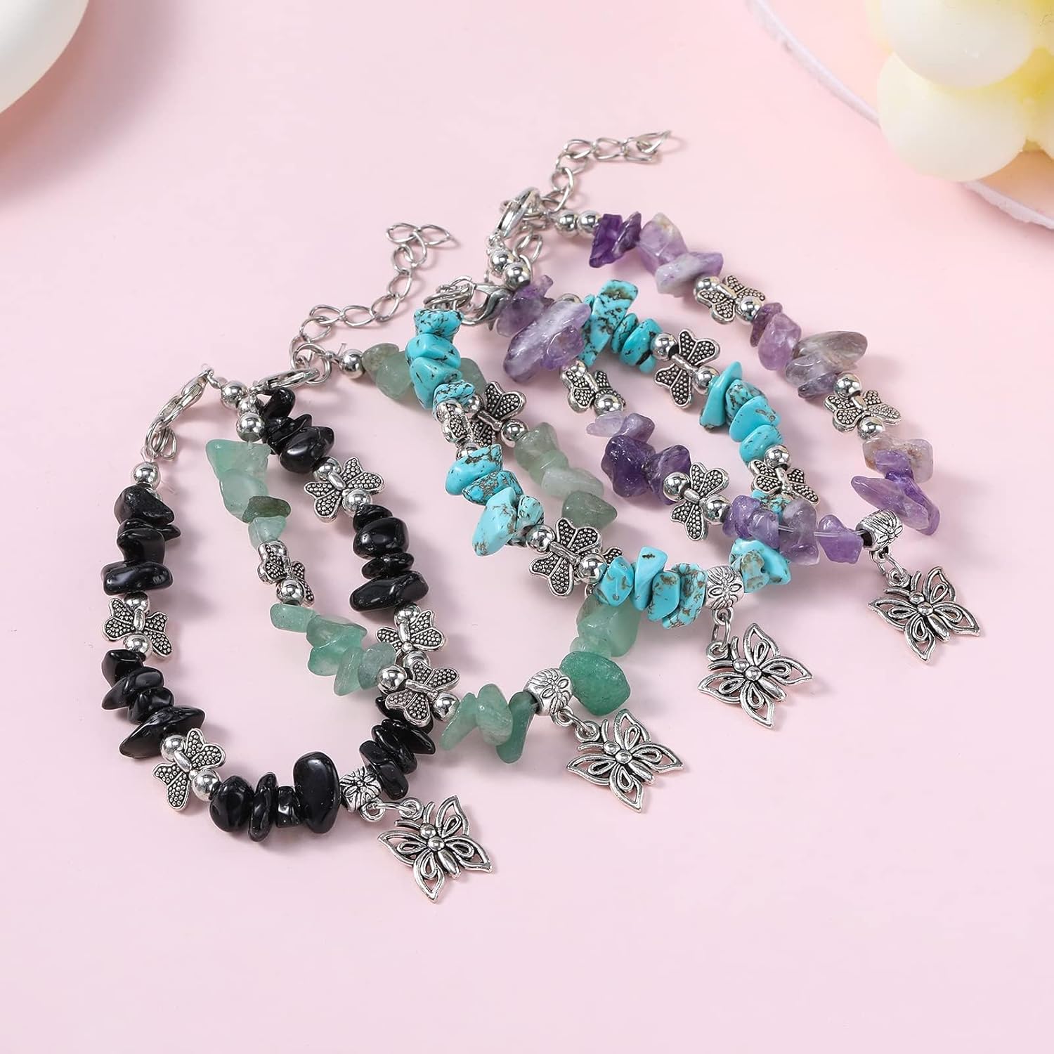 💎 حجر كريم طبيعي: سوار الفراشة هذا مصنوع من أحجار طبيعية أصلية، والتي تجلب التوازن والإيجابية لعقلك وجسمك. تساعدك الأحجار على البقاء نشيطًا وهادئًا طوال اليوم، مما يعزز الرفاهية.