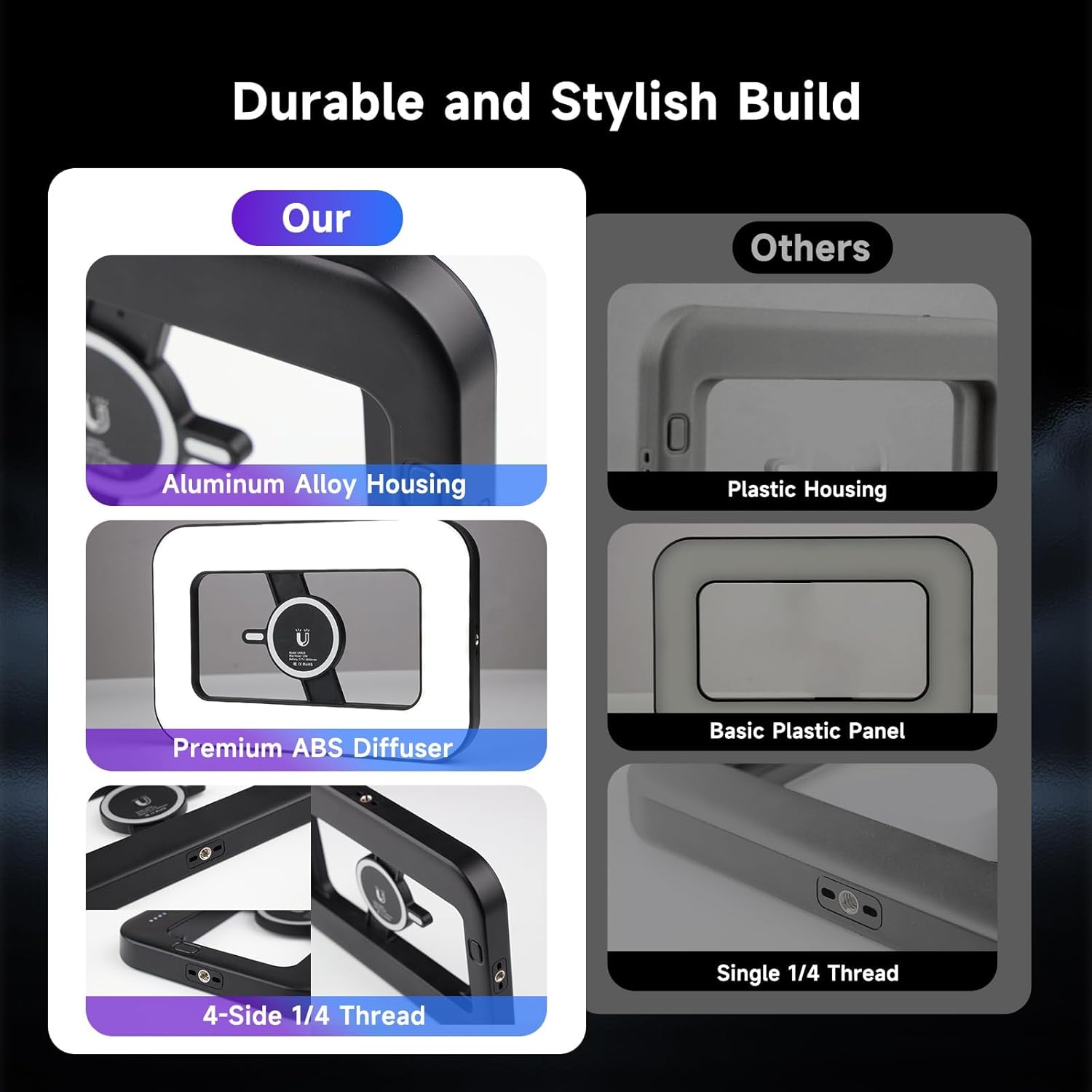 🎨 DURABLE ALUMINUM HOUSING: Precision-crafted aluminum alloy shell ensures superior heat dissipation and longevity versus plastic models. Dual 1/4″ screw ports allow flexible mounting to tripods or stabilizers.