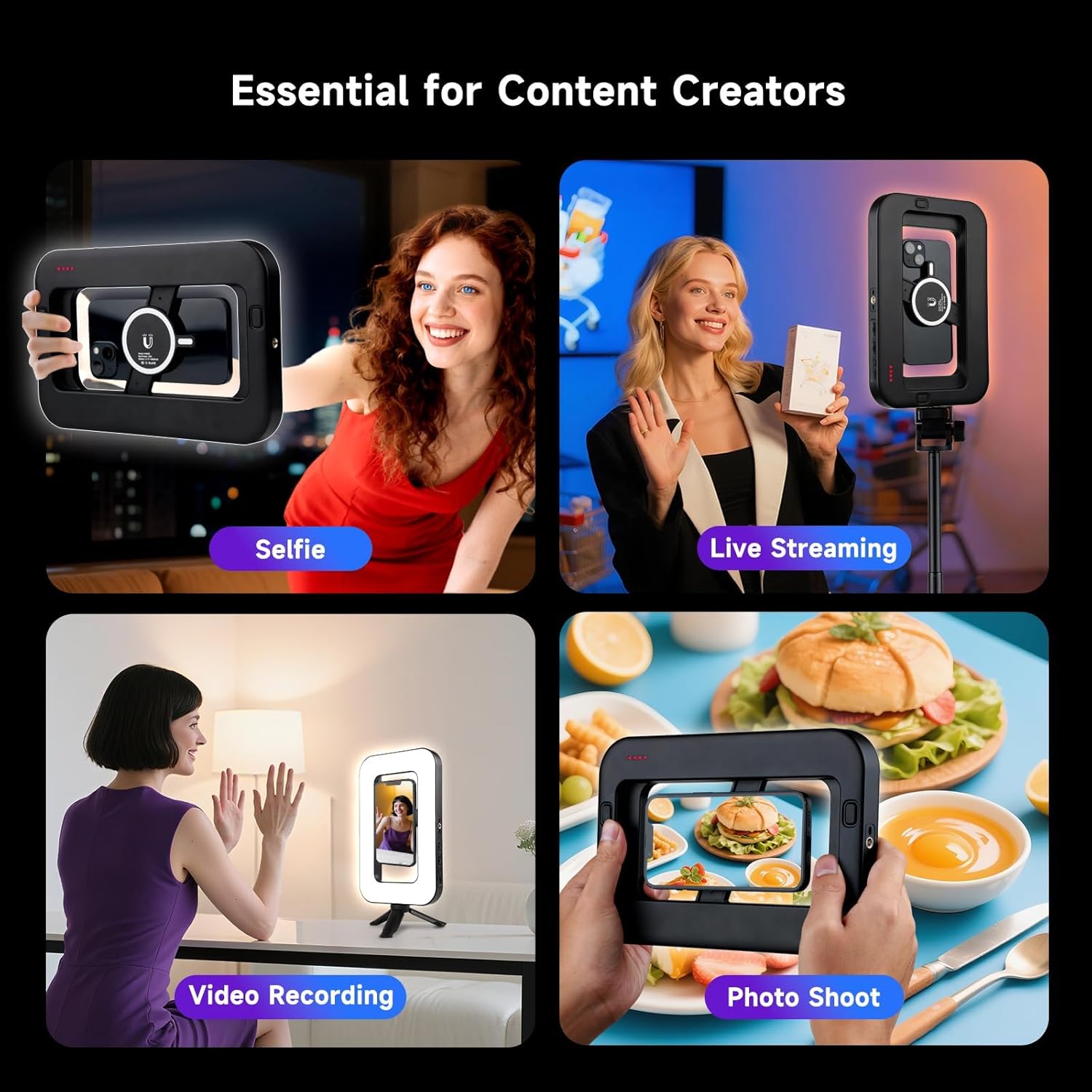 🔋 LONG-LASTING PORTABLE LIGHT: Built-in 6000mAh rechargeable battery powers up to 15 hours of use at lower brightness. Compact dual-side design lets you use it handheld or mounted for mobile content creation.