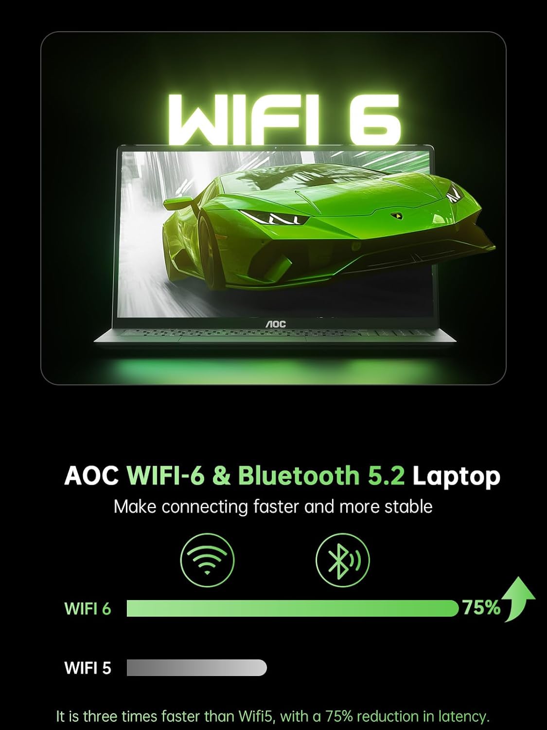AOC لابتوب بمعالج AMD رايزن 7 5700U (حتى 4.3GHz)، شاشة FHD 16 انش مع ذاكرة RAM 16GB وSSD NVMe 512GB وبلوتوث 5.2 وواي فاي 6 وUSB 3.2 وبطارية 53 واط في الساعة وكيبورد باضاءة خلفية نوع C