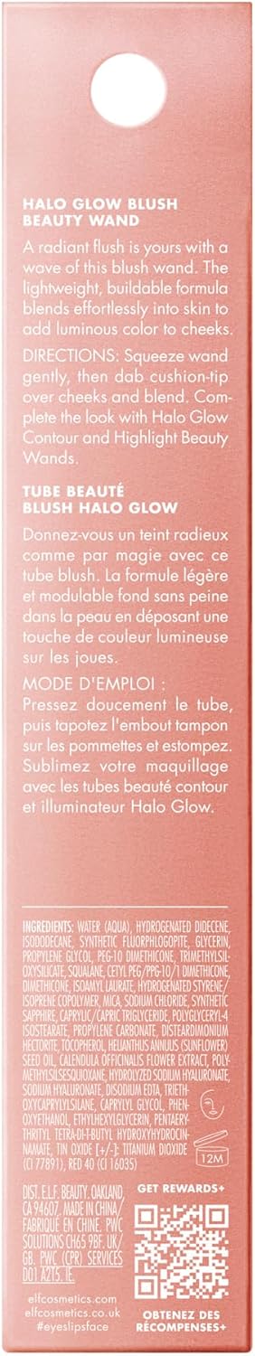 e.l.f. عصا بلش جلو بيوتي من هالو جلو، عصا بلش سائل للحصول على خدود متألقة ومتألقة، غنية بالسكوالين، نباتي ولم يتم اختباره على الحيوانات، روز يو سلاي
