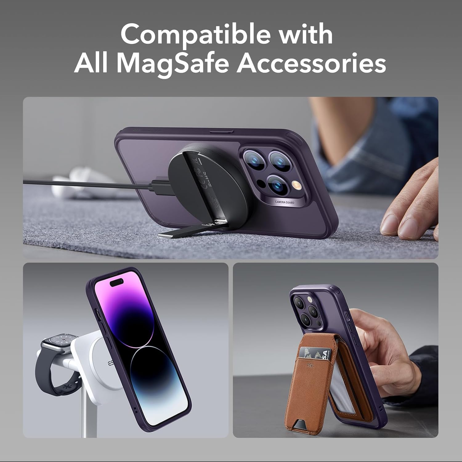 ESR جراب لموبايل ايفون 14 برو ماكس، جراب موبايل ماج سيف يدعم الشحن اللاسلكي المغناطيسي، حماية من الدرجة العسكرية، قبضة ناعمة، غطاء كلاسيكي هايبرد لموبايل ايفون 14 برو ماكس، ارجواني شفاف