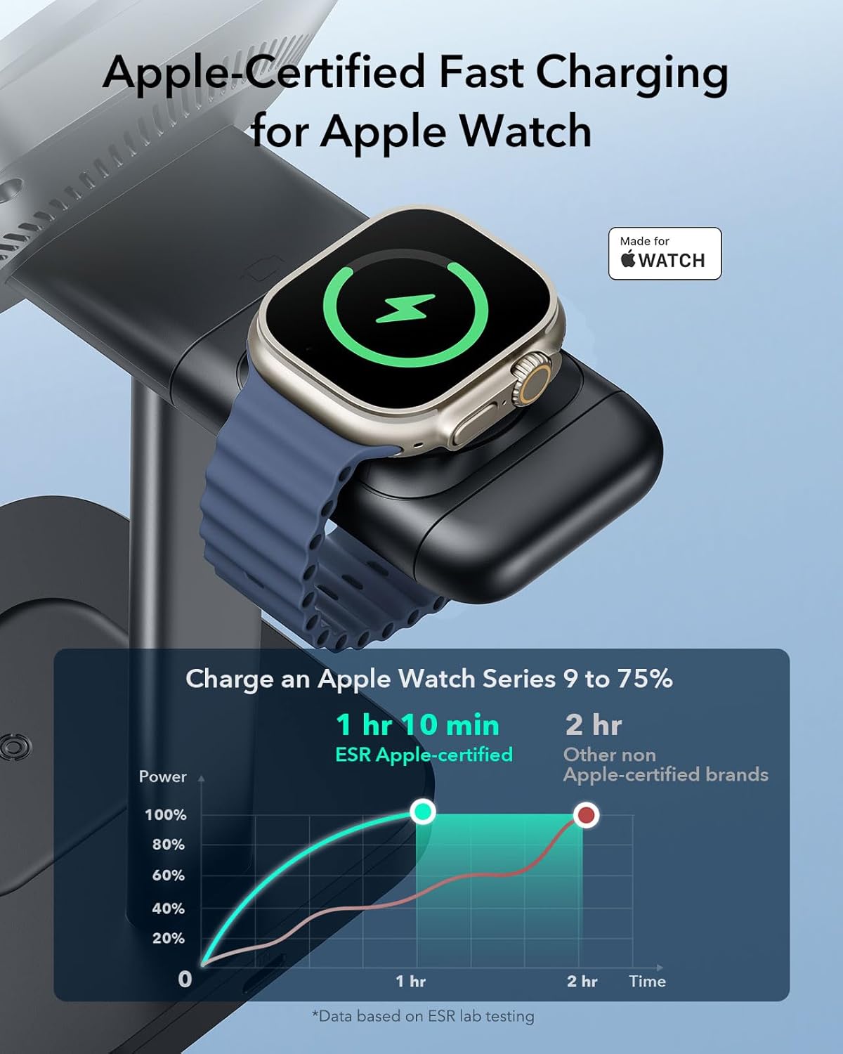 معتمد لساعة ابل: شاحن الساعة معتمد رسميًا ولا يتأثر بتحديثات ووتش او اس، مما يوفر شحنًا سريعًا آمنًا وموثوقًا به