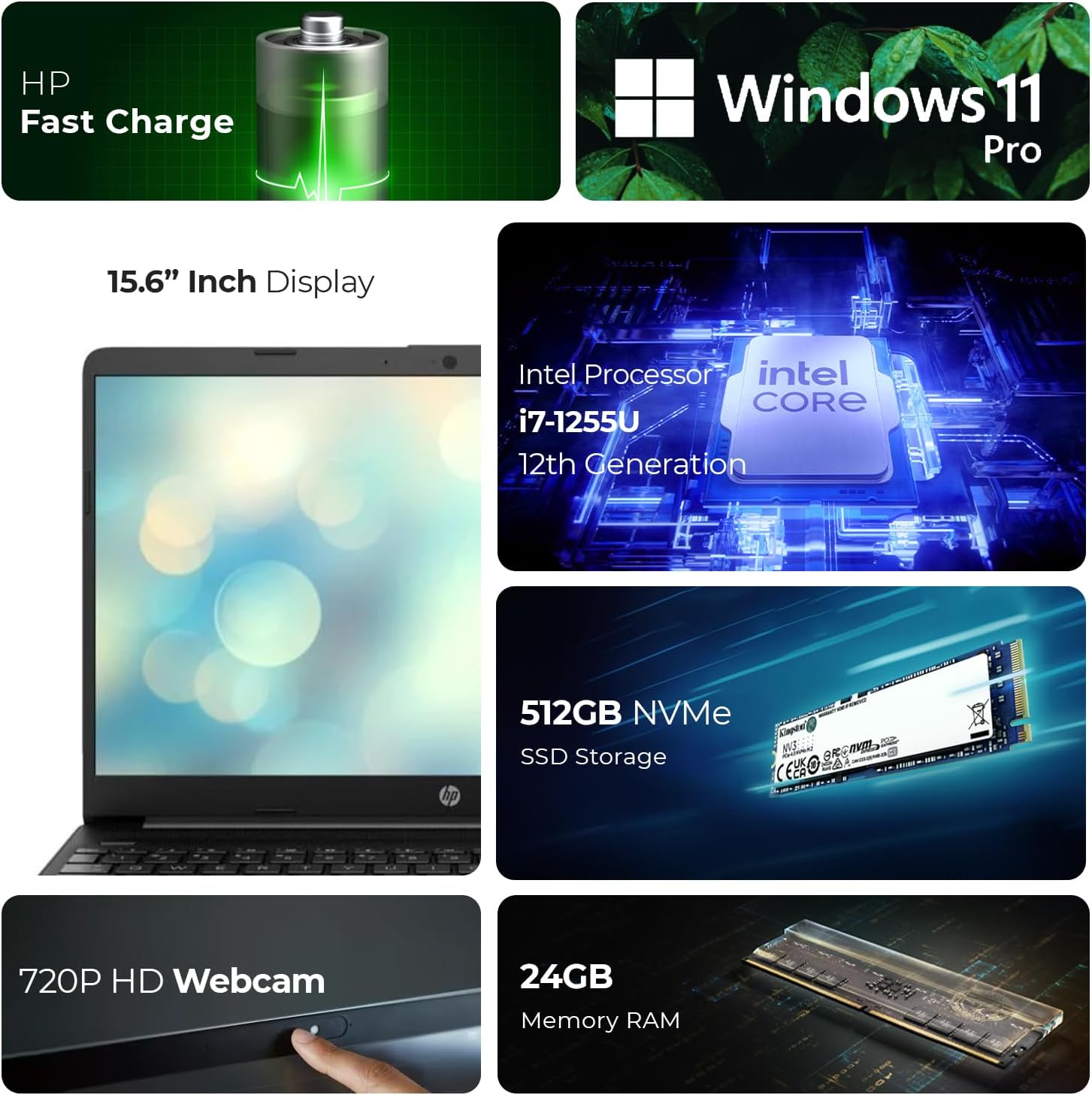 HP لابتوب 15.6 انش الجيل 12 كور i7-1255U وذاكرة RAM 24GB وSSD 512GB وويندوز 11 برو وشاشة FHD وكاميرا ويب وواي فاي (يتضمن حامل لابتوب الموجة الاولى + ماوس + مضاد للفيروسات + قاعدة ماوس) 15s-fq5035ny