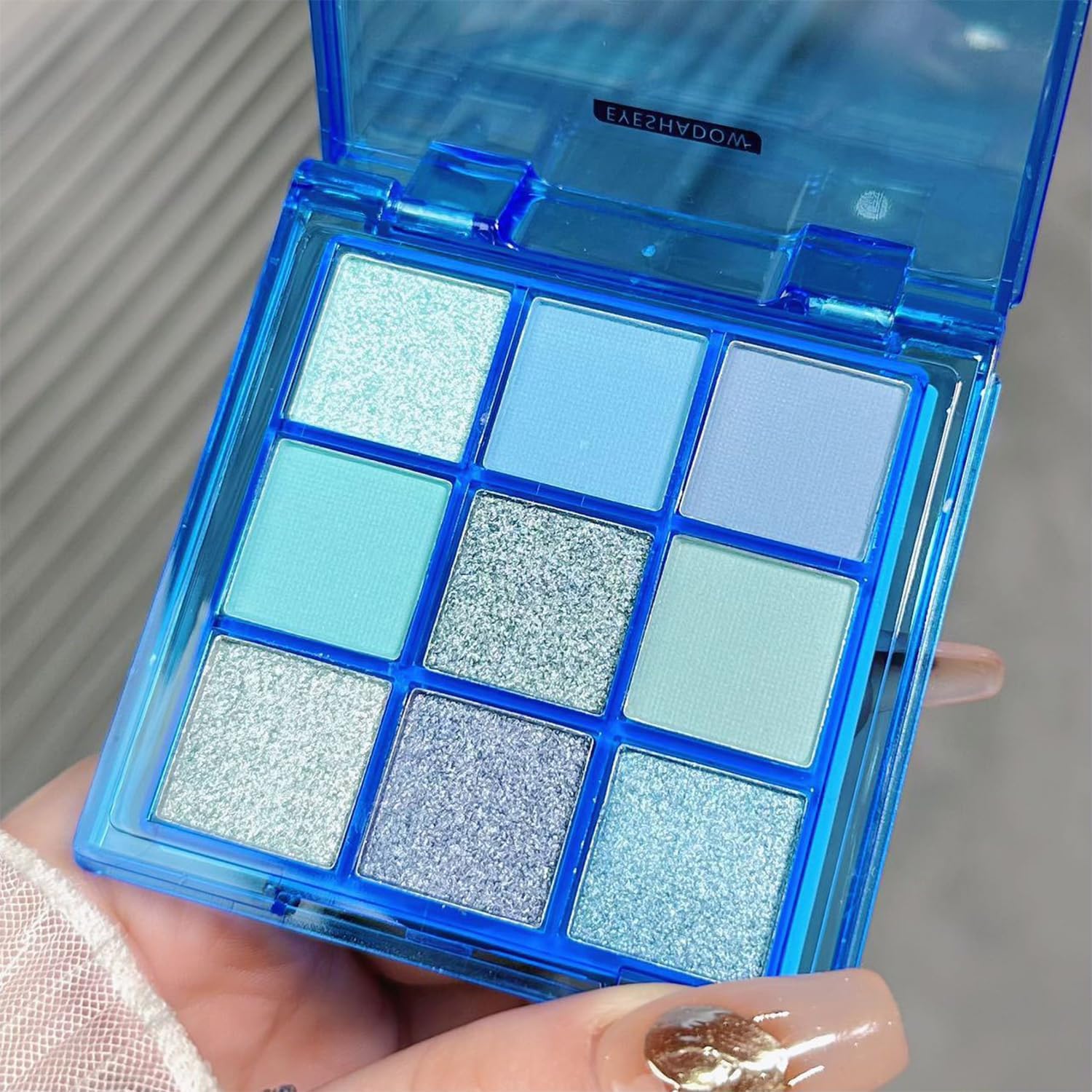 Klein blue Eyeshadow Palette, 9 Colors Glitter Matte Blue Shadow, Highly Pigmented Vibrant Drama Makeup with a Long-Wearing Formula