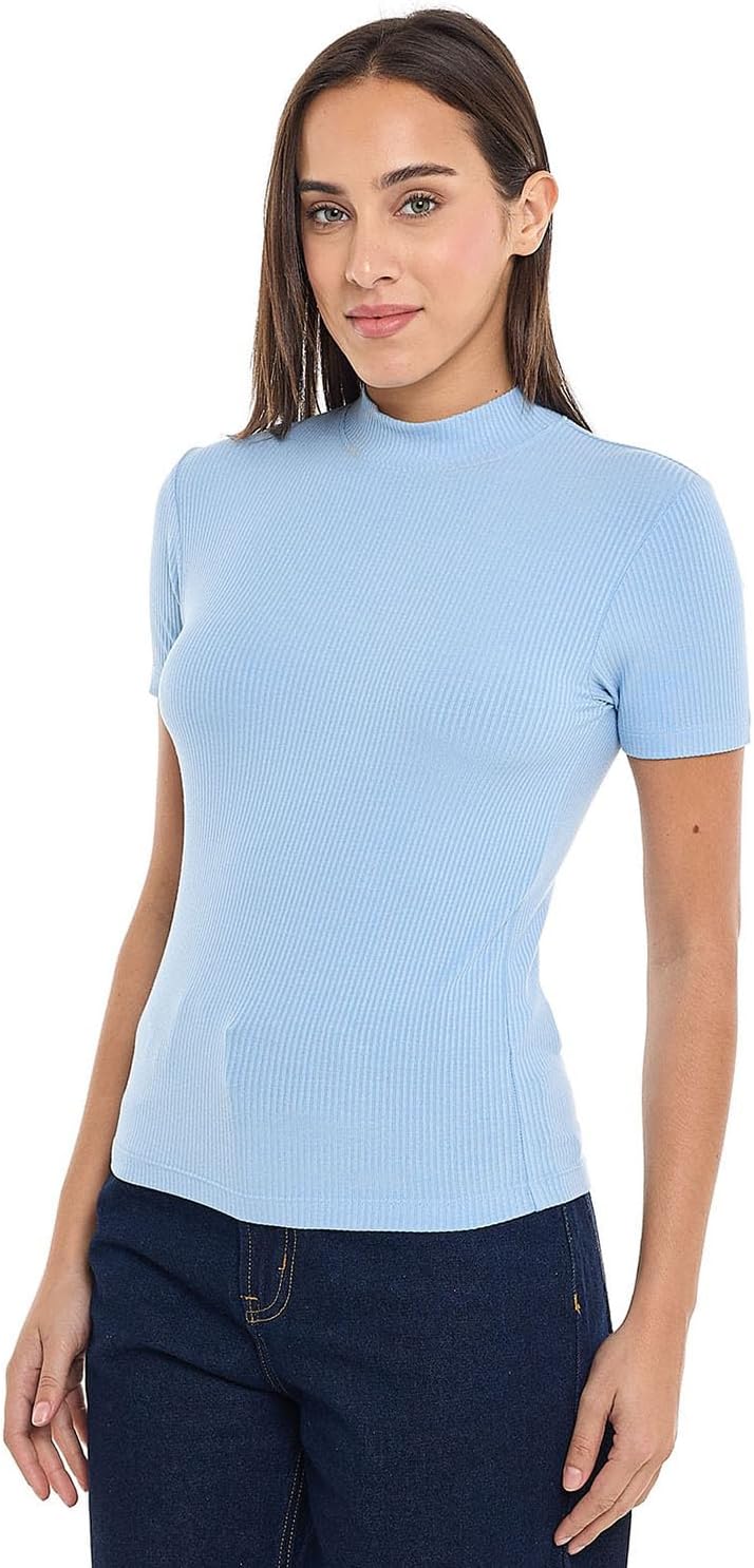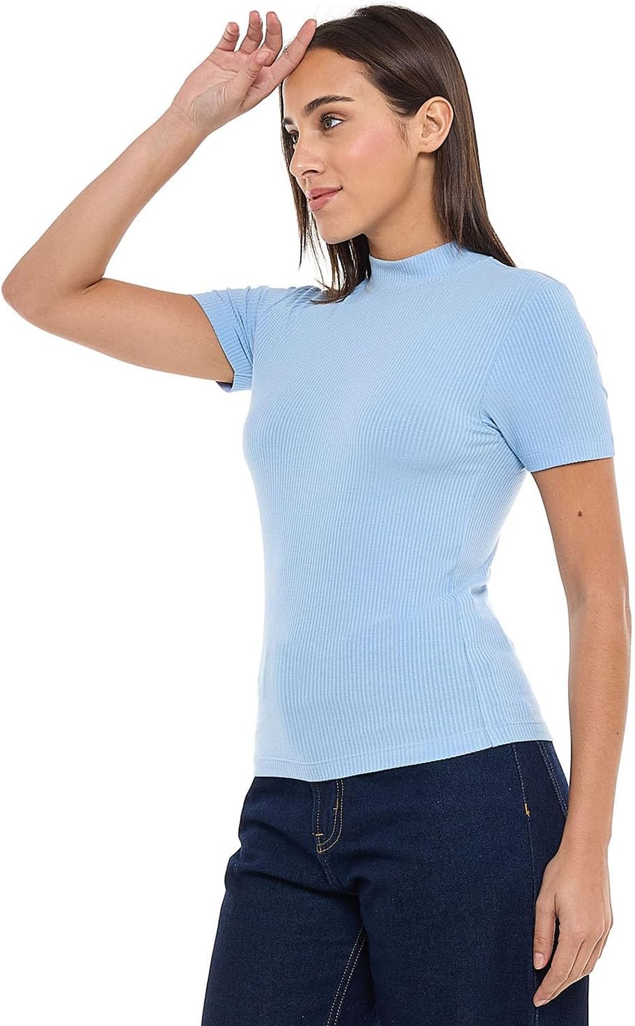 شراء R&B Women’s 325-0451WY001-6 Ribbed Top with Mock Neck and Short Sleeves اون لاين من امازون او نون الامارات R&B Women’s 325-0451WY001-6 Ribbed Top with Mock Neck and Short Sleeves