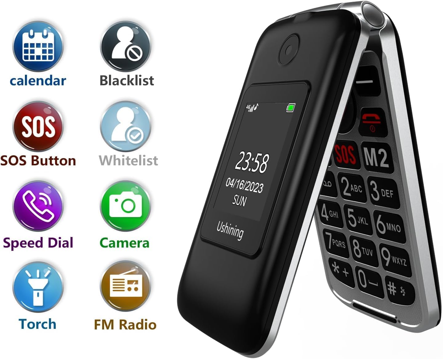 【Advanced Phones with SOS Emergency Buttons】Mobile phones for seniors equipped with emergency sos buttons, through which they can make calls or send text messages to their preferred contact in case of emergency. This phone also supports short calls (special keys m1, m2 and digital keys 2, 3, 4, 5, 6, 7, 8, 9)