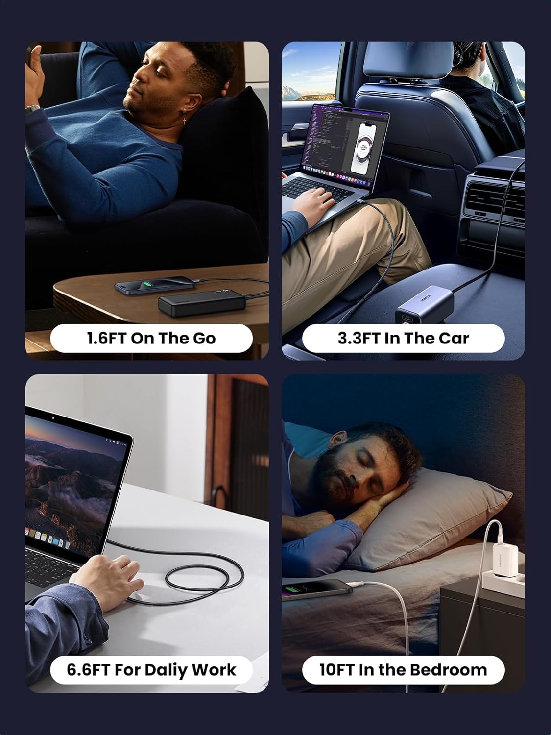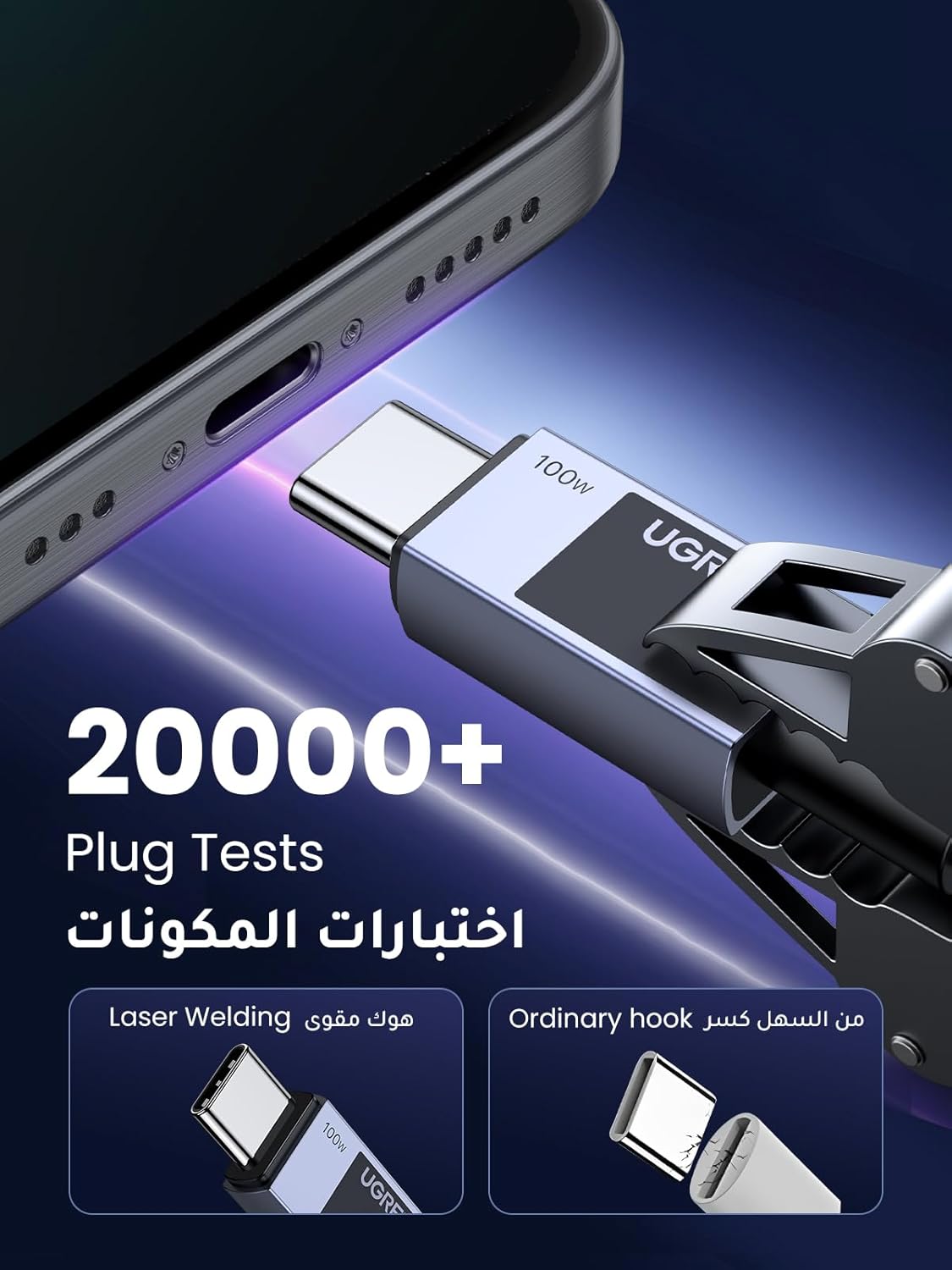 【100 واط بي دي 3.0】مع توصيل طاقة يصل إلى 20 فولت/5 امبير، يمكن لكابل شاحن يوجرين USB C بقدرة 100 واط أن يوفر سرعة شحن كاملة لأجهزتك. يمكن شحن ماك بوك برو 16 انش حتى 42% في 30 دقيقة فقط، وهو أسرع بمقدار 1.5 مرة من كابلات 60 واط. يشحن كيبل USB C إلى USB C ايفون 16 إلى 60% في 30 دقيقة. وفر الوقت للاستمتاع بالحياة