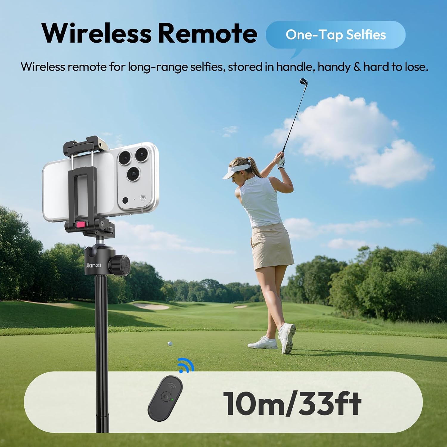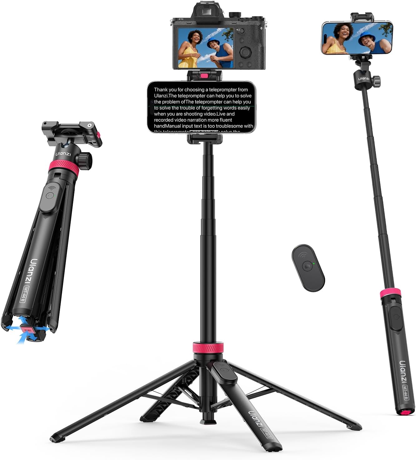 ULANZI New MT-44 B Extendable Phone Tripod, Four-Leg Tripod, 59″ Selfie Stick Vlog Stand with 2 in 1 Phone Clip, Black