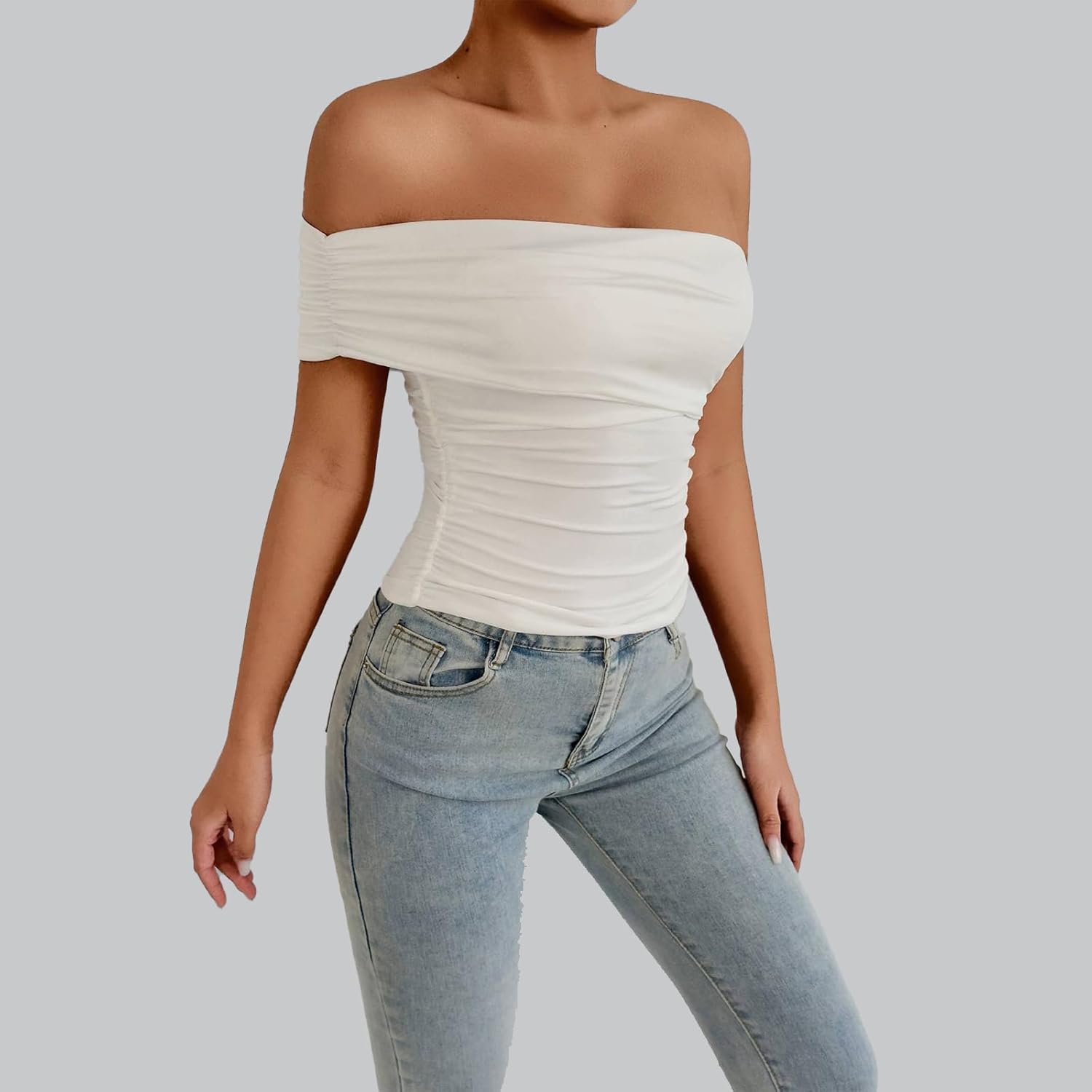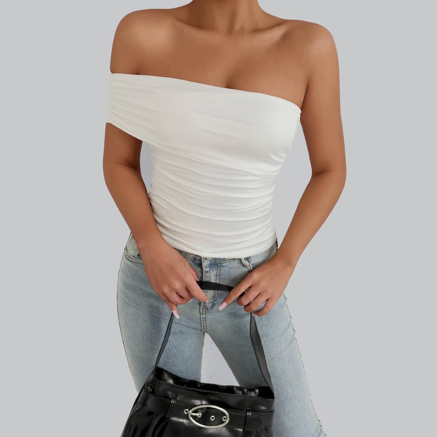Btofellin Women’s Asymmetric Short Sleeve Summer One Shoulder T-Shirt