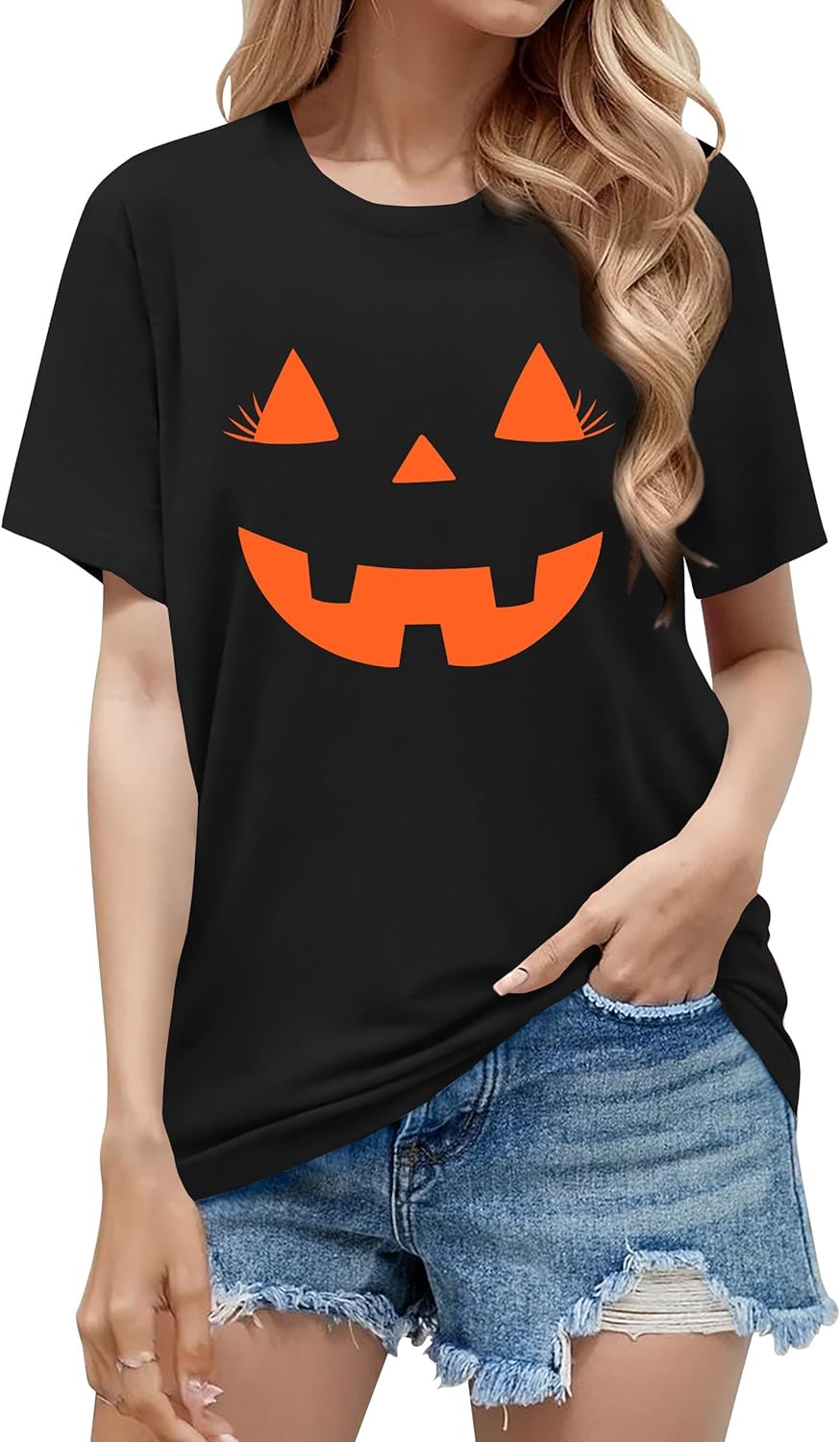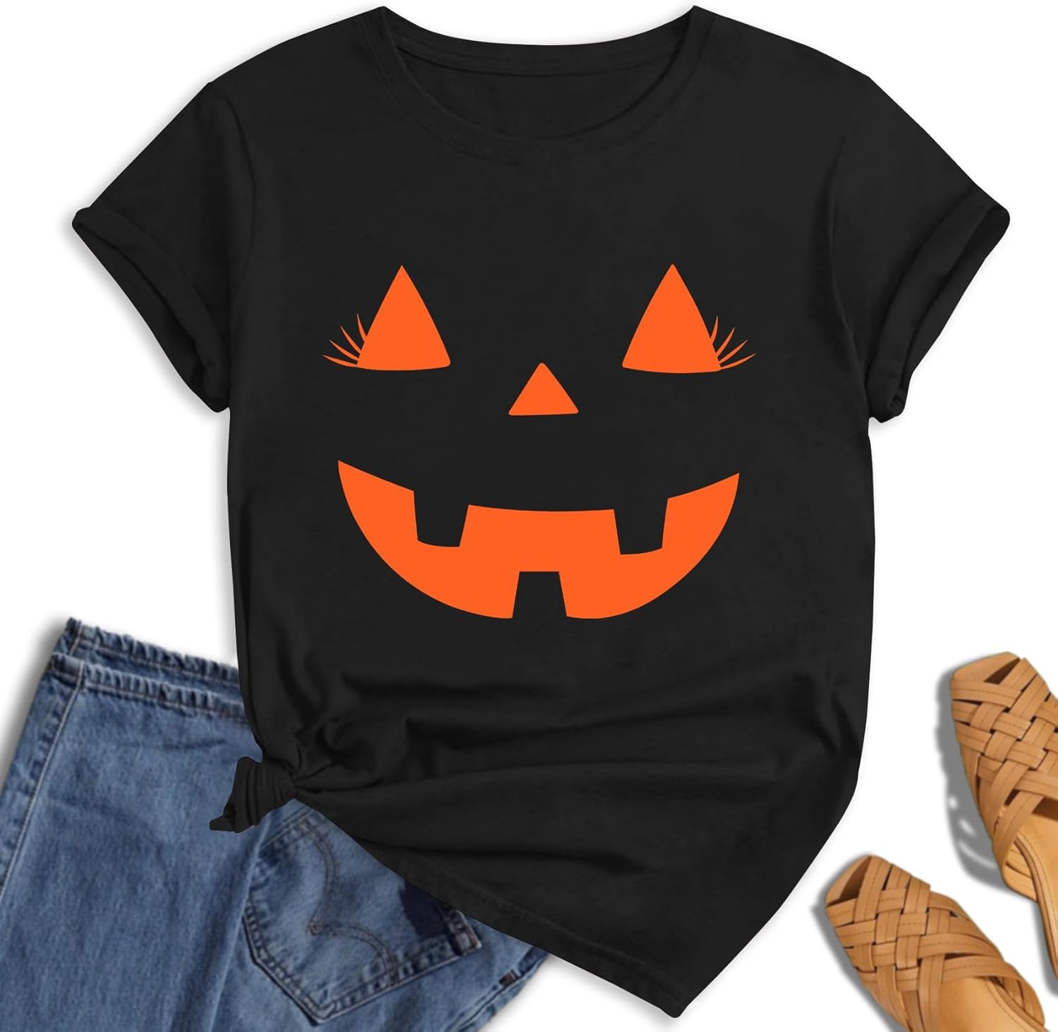 Women’s Halloween Pumpkin Face T-Shirt Women’s Pumpkin Shirt Autumn Carnival Shirts